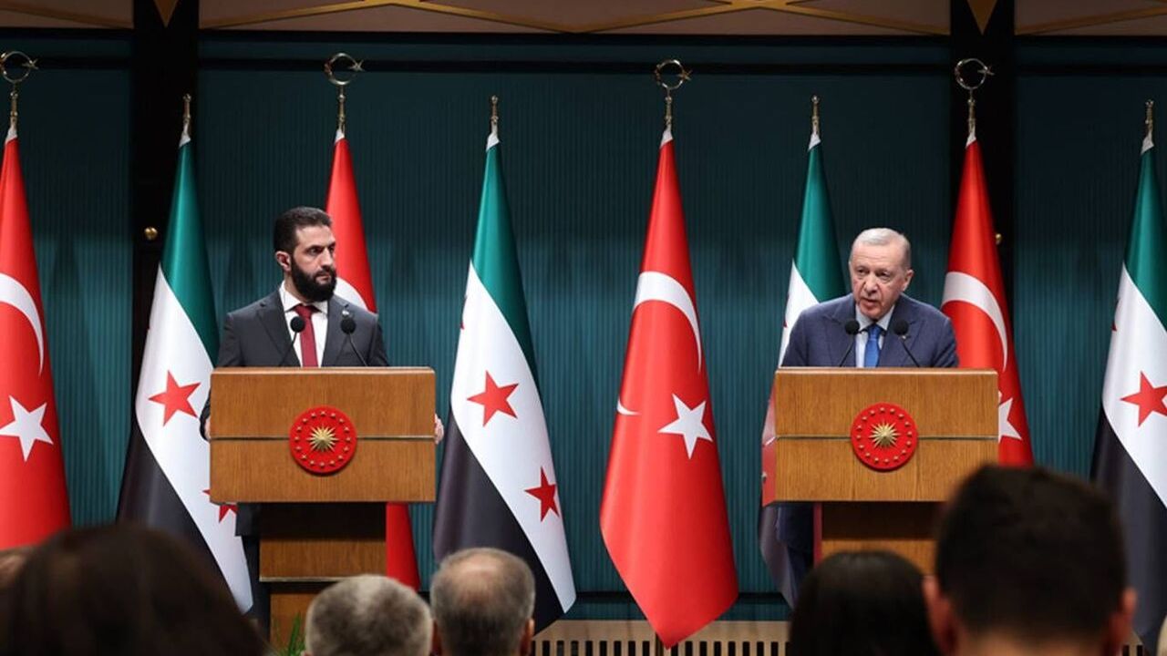 Cumhurbaşkanı Recep Tayyip Erdoğan ve Suriye Arap Cumhuriyeti Cumhurbaşkanı Ahmed Şara, Cumhurbaşkanlığı Külliyesi'nde gerçekleştirdikleri baş başa görüşmenin ardından ortak basın toplantısı düzenleyerek açıklamalarda bulundu.