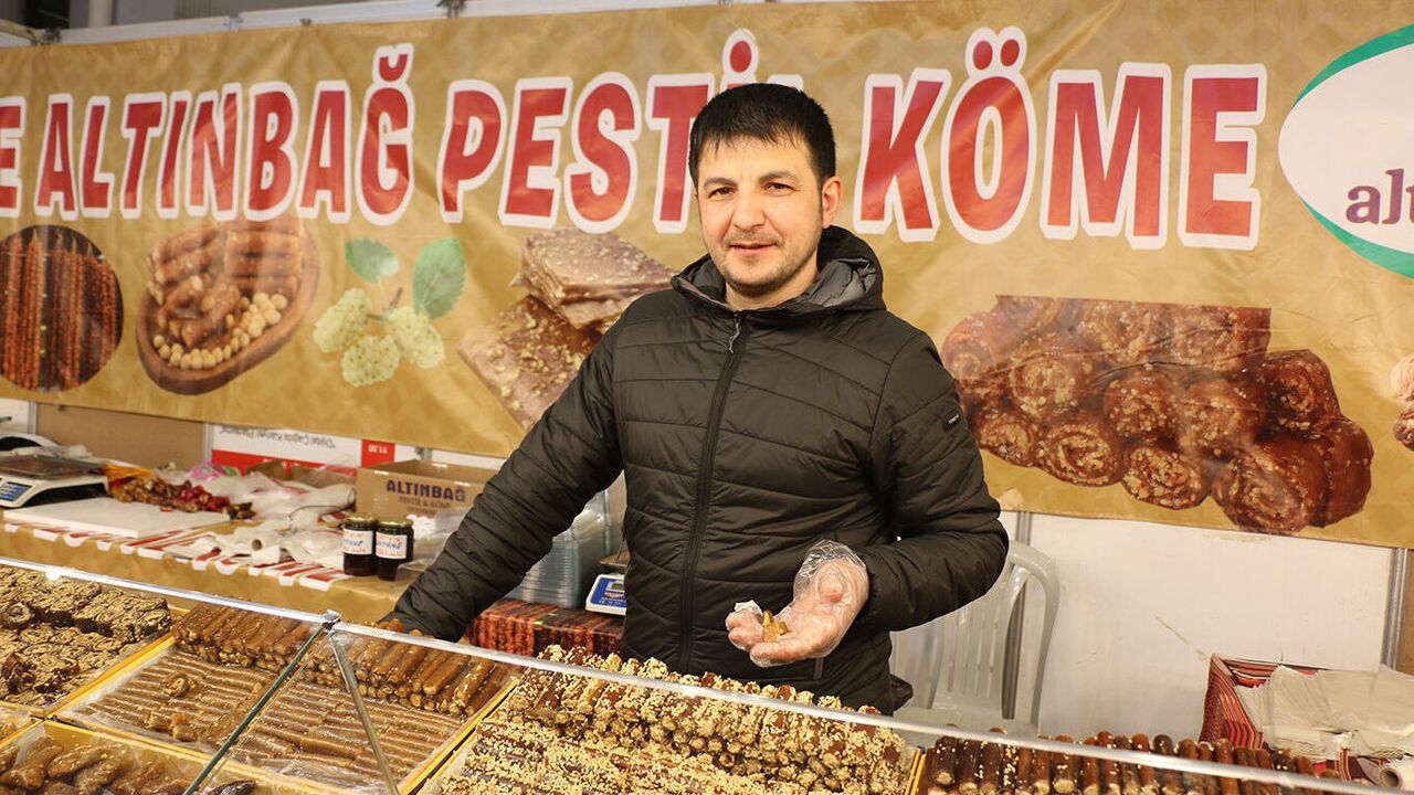 Bayram Gündoğdu, Gümüşhane’de ürettikleri cevizli sucukları, pestil ve ballı gruplar gibi organik ürünleri Şanlıurfa’da düzenlenen 14. Gıda, Yöresel Ürünler, Hediyelik Eşya ve El Sanatları Fuarı'nda sergileyerek halkla buluşturduklarını belirtti.