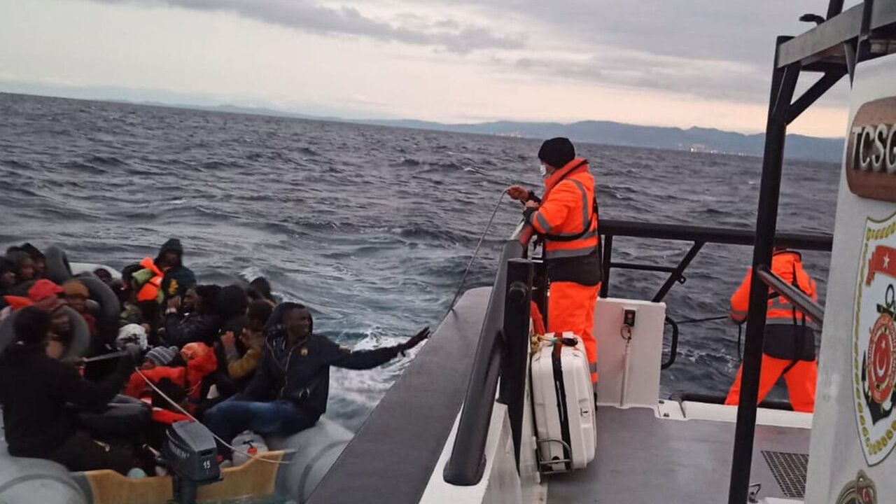 Sahil Güvenlik Komutanlığı ekipleri, Foça ilçesi açıklarında imotor arızası nedeniyle sürüklenen lastik bot içerisindeki 19'u çocuk 33 düzensiz göçmeni karaya çıkardı.