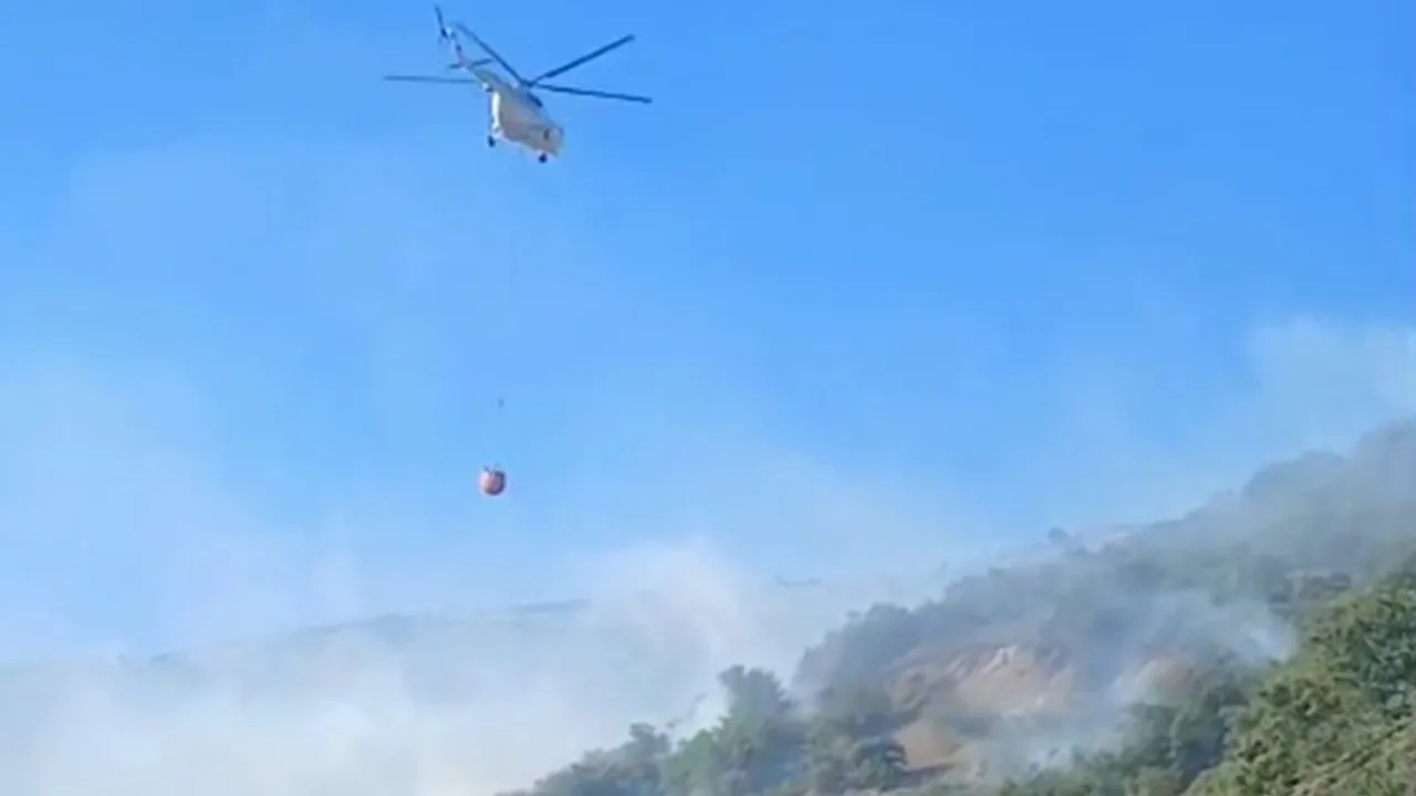 İtfaiye ekiplerinin yanı sıra iş makinaları ve çevredeki vatandaşların da destek verdiği yangın söndürülemeyince çalışmalara, helikopterler de katıldı.